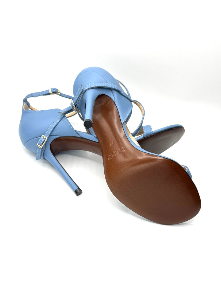 A delicate strap encircles the narrowest part of the foot, visually elongating the leg and adding effortless grace.